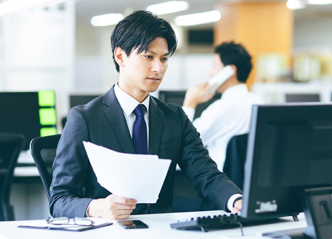 営業サポート(事務)専用システムを使用し、医療材料等の受発注業務や商品の入出庫、納品準備の作業等を行います。営業をサポートし、確実に商品をお客様にお届けするための縁の下の力持ちです。