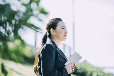 また、社有車にピンクリボンステッカーを貼付したり、胸元にピンクリボンのピンバッジをつけることで乳がん検診の大切さや知識の普及啓発に取り組んでいます。 -